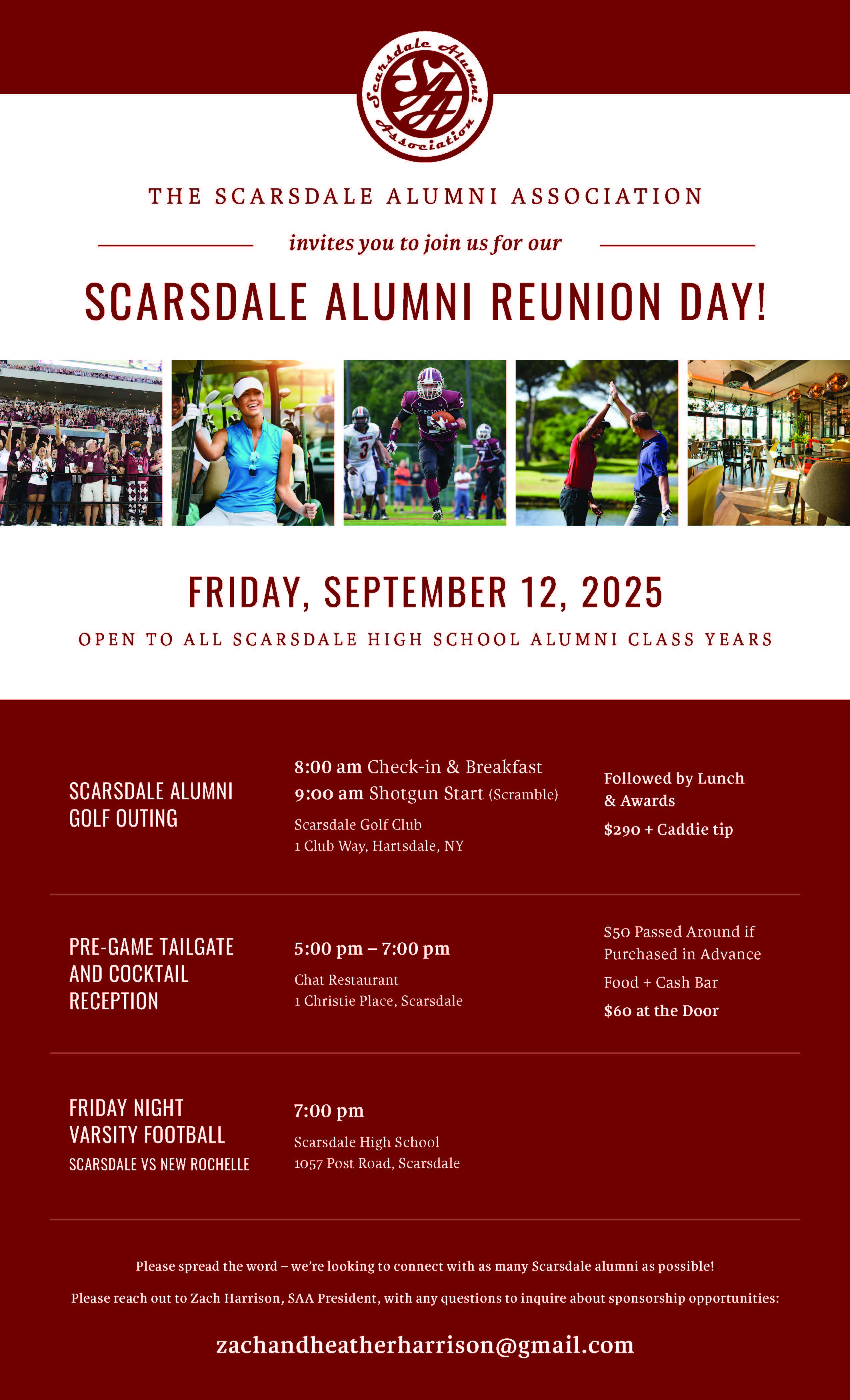 Zach Harrison published Scarsdale All Alumni Reunion! Friday, September 12, 2025 2025-08-24 13:56:04 -0400